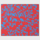 Blue Leaves Vines Red Botanical Design.
