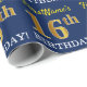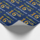 Este design de papel de embrulho apresenta uma mensagem como "FirstName's 16th BIRTHDAY!", com o "16º" a ter uma aparência falsa/de cor dourada. O nome pode ser personalizado, e o fundo tem cor azul. Talvez possa ser utilizada quando se dá presentes para o décimo sexto aniversário de alguém. [~Z0000181]