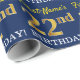 Este design de papel de embrulho apresenta uma mensagem como "First-Name’s 22nd BIRTHDAY!", com o "22º" a ter uma aparência falsa/de cor dourada. O nome pode ser personalizado, e o fundo tem cor azul. Talvez possa ser utilizada quando se dá presentes para o vigésimo segundo aniversário de alguém. [~Z0000181]