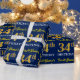 Este design de papel de embrulho apresenta uma mensagem como "First-Name’s 34th BIRTHDAY!", com o "34º" a ter uma aparência falsa/de cor dourada. O nome pode ser personalizado e o plano de fundo tem cor azul. Talvez possa ser utilizado quando se dá presentes para o trigésimo quarto aniversário de alguém. [~Z0000181]