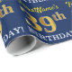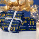 Este design de papel de embrulho apresenta uma mensagem como "FirstName’s 39th BIRTHDAY!", com o "39º" a ter uma aparência falsa/de cor dourada. O nome pode ser personalizado, e o fundo tem cor azul. Talvez possa ser utilizado quando se dá presentes para o trigésimo nono aniversário de alguém. [~Z0000181]