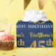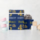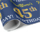 Este design de papel de embrulho apresenta uma mensagem como "FirstName’s 45th BIRTHDAY!", com o "45º" a ter uma aparência falsa/de cor dourada. O nome pode ser personalizado, e o fundo tem cor azul. Talvez possa ser utilizado quando se dá presentes para o quarenta e cinco anos de alguém. [~Z0000181]