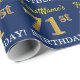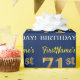 Este design de papel de embrulho apresenta uma mensagem como "FirstName’s 71rua BIRTHDAY!", com a "71ruas" a ter uma aparência falsa e imitada de cor dourada. O nome pode ser personalizado, e o fundo tem cor azul. Talvez possa ser utilizado quando se dá presentes para o 71º aniversário de alguém. [~Z0000181]