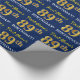 Este design de papel de embrulho apresenta uma mensagem como "First-Name’s 89th BIRTHDAY!", com o "89º" a ter uma aparência falsa/de cor dourada. O nome pode ser personalizado e o plano de fundo tem cor azul. Talvez possa ser utilizado quando se dá presentes para o oitenta e nono aniversário de alguém. [~Z0000181]