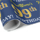 Este design de papel de embrulho apresenta uma mensagem como "FirstName’s 99th BIRTHDAY!", com o "99º" a ter uma aparência falsa/de cor dourada. O nome pode ser personalizado e o plano de fundo tem cor azul. Talvez possa ser utilizado quando se dá presentes para o nonagésimo nono aniversário de alguém. [~Z0000181]