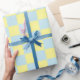 Arte abstrato digital de quadrados azuis pastel e amarelos em formação controlada.