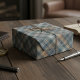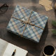 Fundo de xadrez de cor azul, bege, esticado, bronzeado e castanho-escuro. Design moderno, mas simples e simples, para embrulhar aqueles presentes divertidos de aniversário, surpresa ou Natal masculino. Disponível em produtos como papel de embalagem e de tecido, etiquetas para presentes, bolsas e caixas de favores, adesivos e fitas.