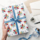 Este papel de embrulho de meio século de flor esmerilada apresenta flores vermelhas, azuis, amarelas e verdes, juntamente com estrelas e pontos. Vai adicionar aquele POP retrô que você quer enrolar seus presentes!