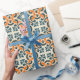Este produto tem um design intricado com fundo azul escuro e padrões ornamentais brancos. O design lembra os estilos tradicionais de cerâmica ou porcelana, que podem interessar a quem aprecia a estética clássica ou vintage.