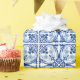 Este produto tem um design intricado com fundo azul escuro e padrões ornamentais brancos. O design lembra os estilos tradicionais de cerâmica ou porcelana, que podem interessar a quem aprecia a estética clássica ou vintage.
