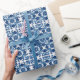 Padrão elegante, na moda e sofisticado com azulejos mediterrânicos de cor azul e branca. Presente moderno e moderno, perfeito para o amante Azulejo em sua vida.