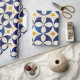 A mão pintou azulejos tradicionais de Portugal. Padrão de perfeição. Trabalho de arte de azulejo de padrão geométrico azulejo azul, branco e amarelo. O design de padrão decorativo perfeito.