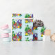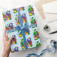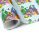 Três dragões bebês eclodiram num ninho de ovos dragões. Flores e borboletas num pano de fundo azul ao redor de dragões bebês.