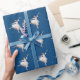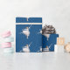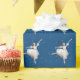 Esta bailarina pequena bonita em seu traje branco da rainha da neve dança com castanets em suas mãos e em uma coroa em sua cabeça nesta imagem temático do balé. O fundo é um azul escuro termina com flocos de neve de queda.
