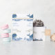 Este papel de embrulho personalizado apresenta uma náutica sob o tema do mar com uma ilustração de uma baleia azul vestindo uma coroa de príncipe dourado. Uma faixa é colocada sobre a baleia que lê, "É um menino!" em uma elegante fonte azul-bebê. Um nome de exemplo é impresso abaixo das ondas seguidas por "Chá de fraldas" em uma fonte azul correspondente. Você pode personalizar o papel de empacotamento para incluir seu próprio nome ou texto personalizado.