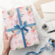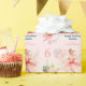 Papel de embrulho personalizado para uma menina Aniversário, com a mais bonita e loira bailarina com balões e flores em tons suaves de rosa, lacre e creme no fundo da rosa claro. Personalize facilmente todo o texto. - Kate Eden Art