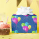 Buquês de balões de aniversário coloridos com confete de festa em fundo azul. A cor de fundo pode ser alterada.