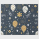 Celebre em estilo com este papel festivo de embrulho! Apresentando um design de balões divertidos, e estrelas cintilantes em tons ricos de ouro, branco e azul escuro, este papel de embrulho traz alegria a qualquer ocasião. Perfeito para aniversários, festas de Ano Novo, ou qualquer celebração que exija um toque extra de entusiasmo, esta design fará com que seu presente se sobressaia e deixe uma impressão duradoura. Enrole seus presentes com uma explosão de diversão e festividade, e deixe que a celebração comece antes mesmo que o presente seja aberto!