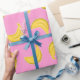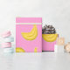 As bananas brilhantes, amarelas decoram este papel de envolvimento com um fundo cor-de-rosa. Aperfeiçoe para a pessoa que o conduz bananas.