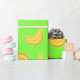 As bananas brilhantes, amarelas decoram este papel de envolvimento com um fundo verde. Aperfeiçoe para a pessoa que o conduz bananas.
