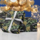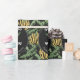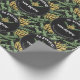 Este papel de embrulho preto, amarelo e verde, lúdico e moderno, "Go Bananas!", apresenta cachos de bananas amarelas desenhados à mão e folhas de bananas verdes tropicais contra um fundo quase negro, com sutil gota de chuva, detalhando em cinzas escuras. Personalize com um título (Feliz Aniversário, Feliz Aniversário, Parabéns, etc.) e seu nome.