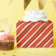 Este papel de embrulho festivo e divertido é versátil e pode ser usado para dar presentes ou projetos de arte e artesanato. É ideal para qualquer ocasião, como feriados, aniversários, casamentos, chás de panela, chás de fraldas, aniversários ou presentes gerais. O design apresenta faixas diagonais vermelhas claras e escuras em um fundo dourado. Perfeito para o Natal.