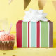 Usando uma paleta nova e moderna com uma vibração retrorreflectora, essas faixas foram criadas em diferentes larguras. O padrão assimétrico é suficientemente versátil para ser usado durante o feriado e também para outras necessidades de doação. As listras foram usadas em muitas outras designs de férias também. // 57 // Concebida por Melody Watson para Paper Muserie.