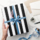 Papel De Presente Bandas Verticais Clássicas, Pretas e Brancas