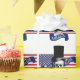 Design patriótico orgulhoso moderno engraçado da bandeira americana com um crânio gótico do vintage do divertimento que veste o chapéu alto do estilo de Abraham Lincoln e uma bandeira americana vermelha da bandeira star spangled da bandeira dos Estados Unidos branca e azul, com dizer do texto de América dos deus abençoe. Comemore orgulhosa a acção de graças ou a 4o do Dia da Independência de julho no estilo.