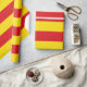 Este item apresenta as faixas icônicas vermelha e amarela da bandeira catalã. A Catalunha (Catalunha) é uma comunidade autônoma no canto nordeste da Espanha, que possui um forte movimento nacionalista em busca da independência da região. A maior cidade da Catalunha é Barcelona, situada na costa do Mar Mediterrâneo.