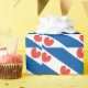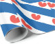 Bandeira da Frísia, uma província dos Países Baixos. É constituído por faixas diagonais azuis e brancas; nas listras brancas estão a pompa vermelha, folhas da lírio-d'água amarela, que podem lembrar um coração, mas, de acordo com as instruções oficiais, "não devem ter forma cardíaca".