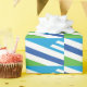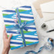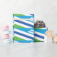 Papel embrulhando com um design com um design com a bandeira de Dayton, Ohio. Uma bandeira verde, azul e branca