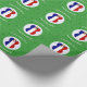 Bandeira francesa Anjo de Natal personalizado papel de embrulho. Design apresenta um anjo, vestido na bandeira da França dentro um círculo branco de quadrados rabugentos. O fundo é verde quadrado. Personalizado com nome, ano e feriado, ou o que quiser. Enrole seus presentes de férias e compartilhe seu patrimônio ou planos de viagem ao mesmo tempo.