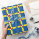 Papel de embrulho com design com uma bandeira do condado histórico de Pembrokeshire, no País de Gales, na Grã-Bretanha Excelente; bandeira azul-azure com uma cruz amarela e rosa branco Tudor no centro