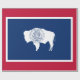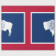Esta design apresenta a bandeira estadual de Wyoming, que é um estado duplamente fechado nos Estados Unidos ocidentais. É o segundo Estado mais escassamente povoado do país. Wyoming fica a norte por Montana, a leste por Dakota do Sul e Nebraska, a sul pelo Colorado, a sudoeste por Utah e a oeste por Idaho e Montana. O apelido oficial do Wyoming é o "Estado da Igualdade", mas é também por vezes conhecido como "Estado Cowboy" ou "Grande Wyoming". A metade ocidental de Wyoming é coberta principalmente pelas cordilheiras das Montanhas Rochosas, enquanto a metade oriental do estado é uma pradaria de altas alturas chamada High Plains. O Parque Nacional Yellowstone está parcialmente no Wyoming e o Parque Nacional do Grande Teton está inteiramente no estado. Cheyenne é a capital estatal e a cidade mais populosa de Wyoming. A bandeira do Estado de Wyoming inclui uma silhueta de um bisão americano. O vermelho simboliza Americanos nativos e o sangue de pioneiros que deram suas vidas. O branco é um símbolo de pureza e pureza. O azul é a cor dos céus e das montanhas distantes.