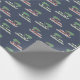 Este papel de embrulho é perfeito para o Natal. O presente contém ilustrações de botas de pontoon com uma árvore de Natal no topo contra um fundo azul marinho.