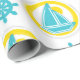 Esta simples design é divertida com seus pôrs do sol e veleiros junto com uma roda de navio para completá-la. É limpo e silencioso, mas diz muito sem palavras. Tenha um Dia Náutico e adicione diversão ao seu próximo presente com este papel de embrulho. Aproveite!