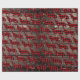 Um papel de embrulho de Natal com um fundo de conselho de celeiro de madeira com um lobo de xadrez de búfalo com padrões repetidos.