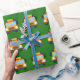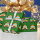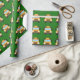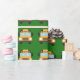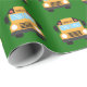 Um padrão legal de ônibus escolar amarelo em papel de embrulho verde para um motorista.