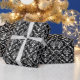 Papel De Presente Barroco Branco Damáscaras Preto Personalizado