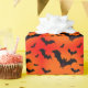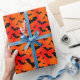 Esfregando papel em um design divertido e assustador, com bastões pretos ao estilo cartoon com olhos vermelhos brilhantes voando sobre um fundo laranja ousado, fazer perfeito para decoração temática no Halloween ou suprimentos de festas. É brincalhão, um pouco assustador, e cheio do espírito do Dia das Bruxas!