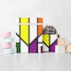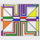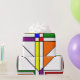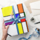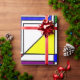 Este papel de embrulho tem um design Bauhaus de linhas, triângulos, diamantes e fazeres quadrados, um olhar colorido em cores primárias e secundárias.