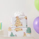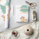 Beach Christmas theme wrapping paper. Has trees, dogs, and sand snowmen.