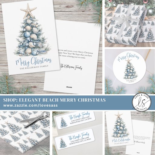 Elegant Blue & White Shell Beach ChristmasCriado por Jo P.