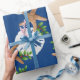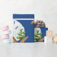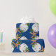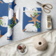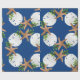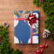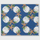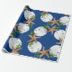 Papel de embrulho de Natal de qualidade num rolo com estrelas e design de areia. Esta imagem grande é impressa sobre uma cor de fundo azul marinho, com conchas e holly em fazer castanho, branco e verde com um padrão circular de coroa. Se você não vir uma cor de fundo que quiser, poderá escolher a sua na área "personalizar mais".