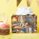 Papel De Presente Beagle Sitting by Fireplace with Christmas Lights