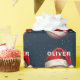 Beisebol Red Santa Hat Nome Papel De Vestido De Natal. O design tem uma bola de beisebol com um chapéu vermelho de Papai Noel em um fundo escuro com flocos de neve brancos. Personalize com seu nome. Excelente para uma pessoa que ama esportes.