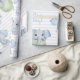 É um garoto, elefantes de aquarela azul sobre fundo branco. Balões acendem este padrão fofo para todo seu embrulho de presente de chá de fraldas.