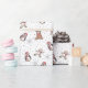 Este papel de embrulho neutro em termos de gênero apresenta um adorável padrão desenhado à mão de animais de recheio de inverno (renas, ursos de pelúcia e pinguins) entre pequenas estrelas amarelas e flocos de neve, todos sobre fundo branco. Perfeito para o primeiro natal do bebê, chá de fraldas de inverno, aniversário de inverno, etc.
