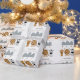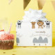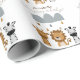 Este papel de embrulho de presente de chá de fraldas personalizado bonito apresenta um tema de bebê boho. Três bonitinhos animais safari - uma girafa, um filhote de leão e uma zebra - estão juntos sob uma nuvem de chuva. As cores da terra e do boho são neutras em termos de gênero, pelo que são adequadas para um bebê ou chá de menina.